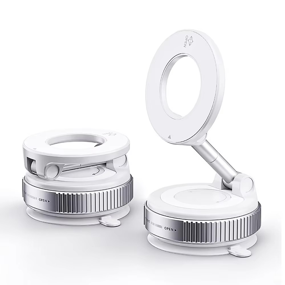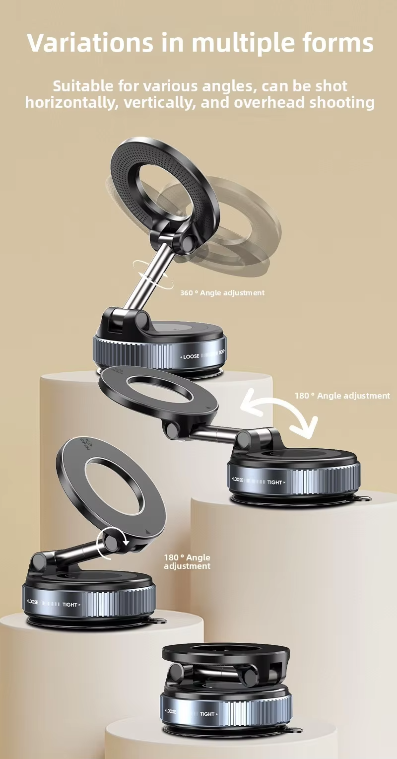 Powerful vacuum suction with 360° adjustment.Strong magnet for car & desk, one-handed use.Universal hands-free holder for all phones.