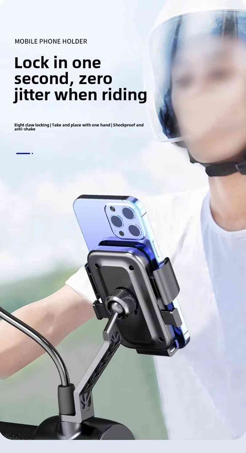 Shockproof design keeps your phone secure on bumpy rides.Universal fit for most motorcycle and bicycle handlebars.Tool-free installation, securely mounted in seconds.
